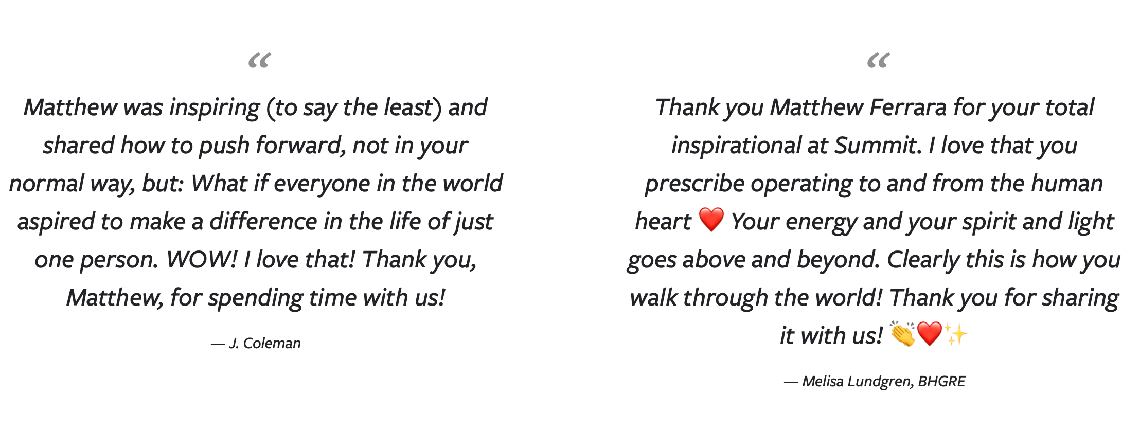 To learn more about my speaking opportunities, coaching and creativity experiences, please reach out at 508-878-6223 or matthew@mflearn.com